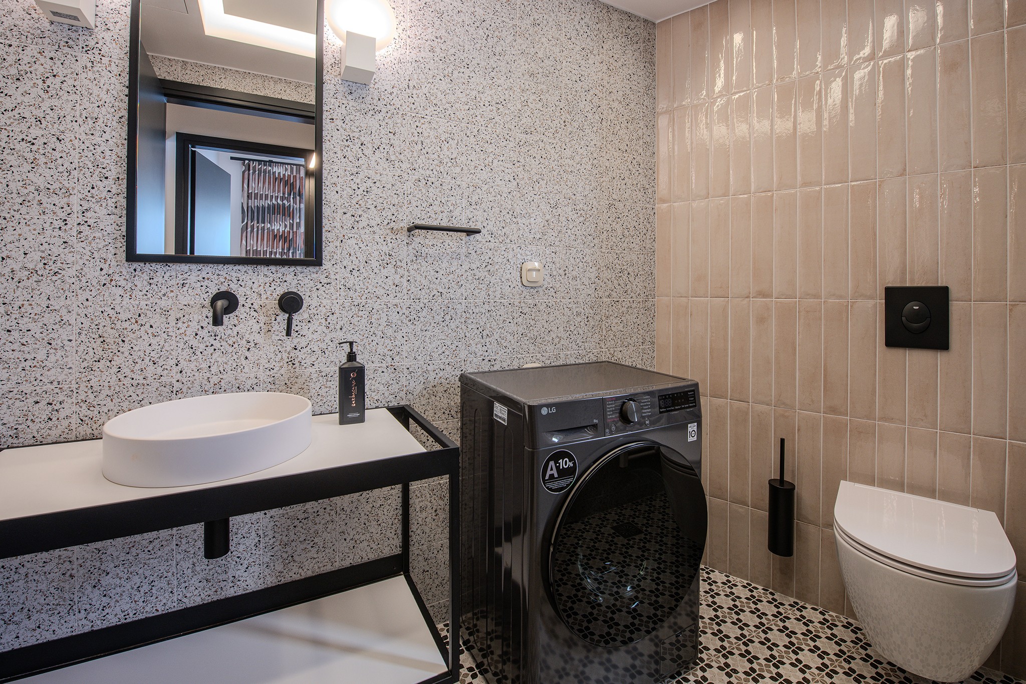 Porto Searene is equipped with all modern amenities to ensure a comfortable and convenient stay. The fully appointed kitchen features a dishwasher, coffee machine, kettle, and fridge-freezer, allowing guests to easily prepare breakfast or home-cooked meals. Additional conveniences include a washing machine, iron and ironing board, and drying rack. In the bathroom, guests will find complimentary shampoo and essential toiletries, enhancing the overall accommodation experience.